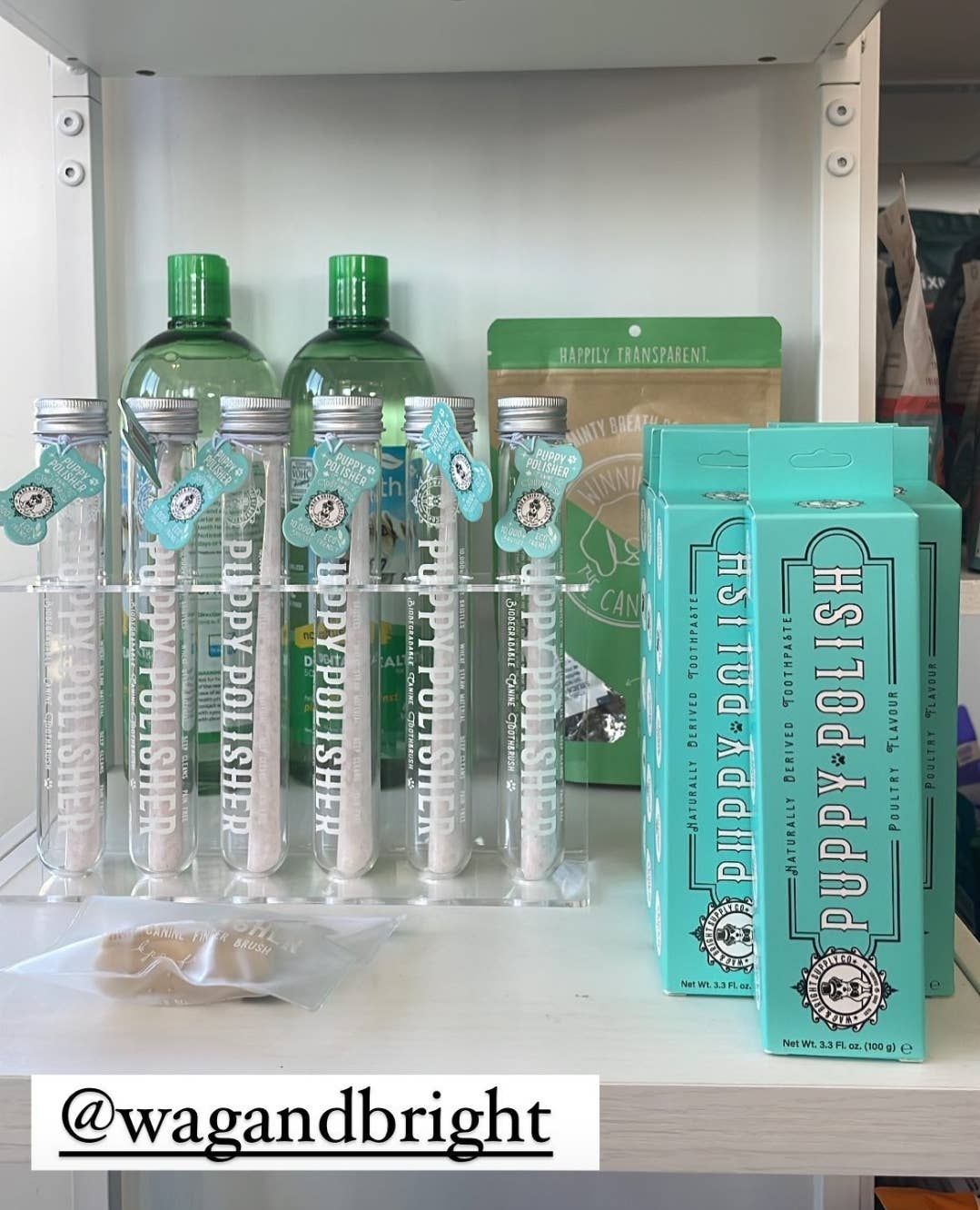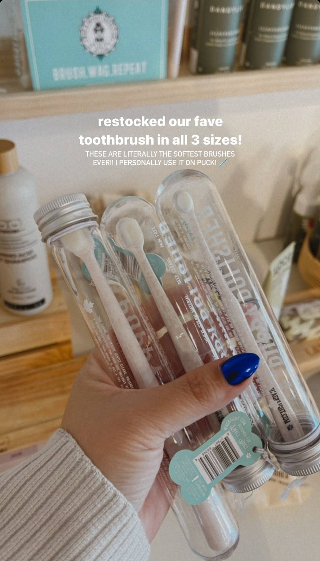 The ultimate softness for your pup! This toothbrush is made from a wheat straw composite upcycled bioplastic. It has over 10,000+ silky PBT bristles to provide the deepest cleaning action while yet gentle on your dogs sensitive gums. This brush comes in a breathable container for easy storage. Most dog toothbrushes are made with hard rigid nylon bristles, making the brushing process painful and difficult. Our Puppy Polisher brush makes the process painless yet effective in plaque and debris removal due to the ultra fine PBT bristles. During production, injection molding fuses bristles to our brush head, eliminating extra space where bacteria can hide and grow. Brushes are UV treated for sanitation. Mini size also available for small dogs. Comes with J hook for slat wall hanging. Can also be used with display stand. Made with international parts, designed with love in Canada.